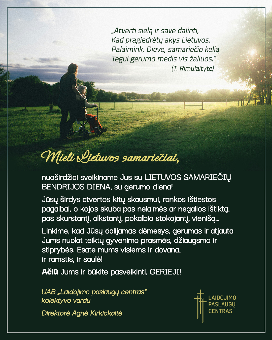„Nieko nėra brangiau už gyvenimą“, – toks mūsų įmonės kasdienio sunkaus darbo šūkis. O Jūs, samariečiai, darote viską, kad žmogaus gyvenimas taptų ilgesnis, šviesesnis, skalsesnis, pilnavertis… AČIŪ kiekvienam iš Jūsų ir visai bendruomenei.